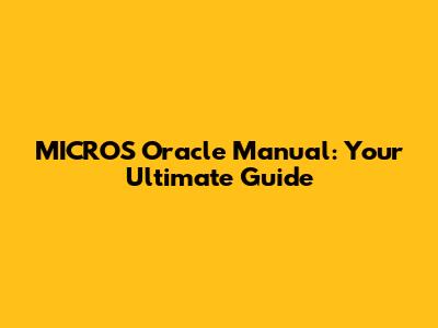MICROS Oracle Manual: A Comprehensive Guide