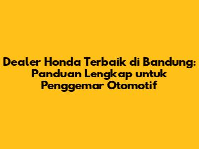 Temukan Dealer Honda Terbaik Di Bandung: Panduan Lengkap