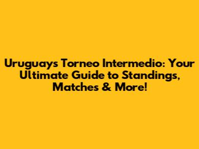 Uruguay's Torneo Intermedio: Standings, Matches & More!
